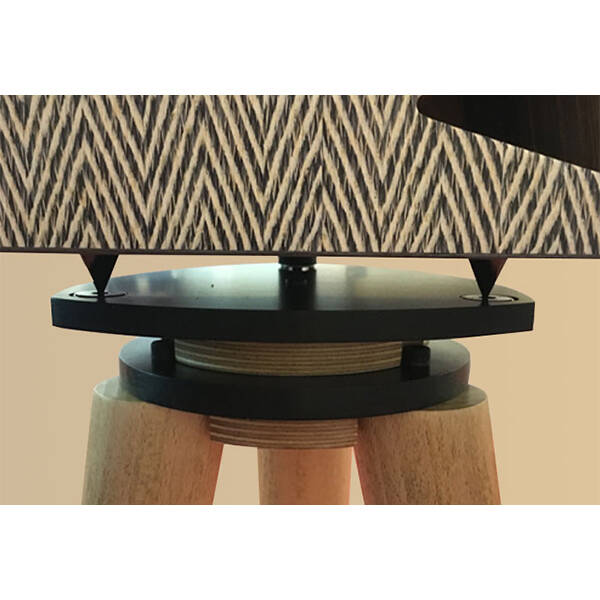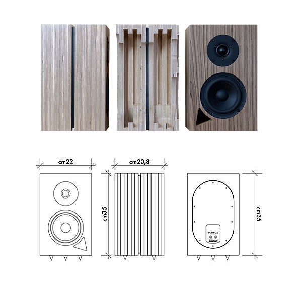The new "rib" assembly system guarantees superior mechanical stiffening, as the alternating thickness acts as bracing. The resulting channels are used for a "reasoned" insertion of the sound-absorbing material, so as to avoid the formation of standing waves inside the cabinet. The drivers are mounted on a 30 mm plywood panel. The separation of the two blocks, subsequently fixed with screws and spaced by an HPL sheet, guarantees further stability over time on the part of the birch plywood.